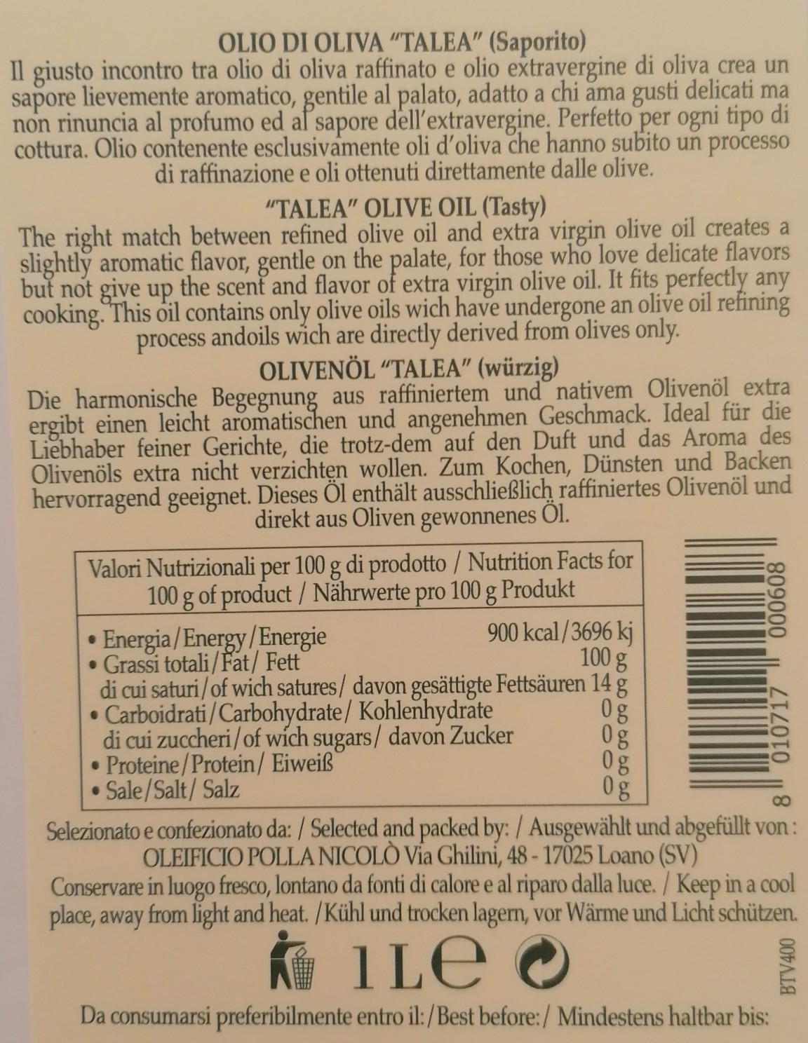Olio di Oliva Talea con 35% Extravergine 1L